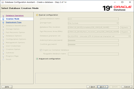 MaxSession, Character Set, Memory 설정 등을 위해 Advanced configuration을 선택한다.