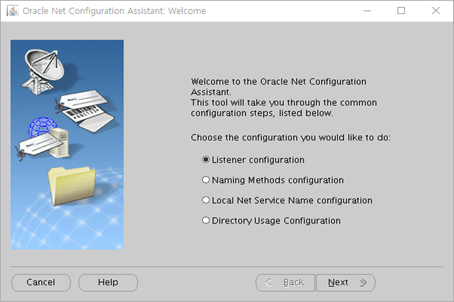 - 터미널상태에서 netca 명령어를 통해 Oracle Net 환경설정을 시작한다.