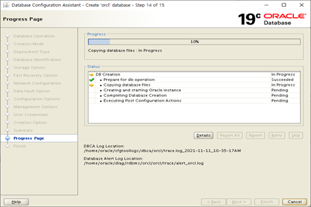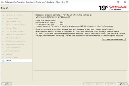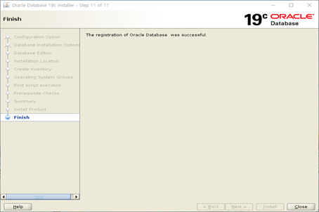 약 5분 ~10분 가량이 소요되며 Oracle19C RDBMS 설치가 완료되었다.