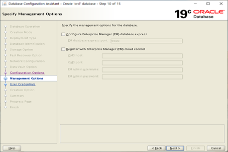 Oracle에서 제공하는 무료 관리툴인 EM(Enterprise Manager)에 대한 설정화면이다.