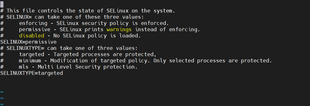 /etc/sysconfig/selinux 파일의 SELINUX 항목을 permissive로 설정한다.