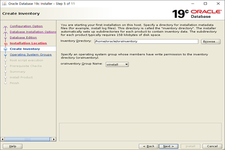미리 설정했던 $ORA_INVENTORY 환경변수와 일치한지 확인한다.